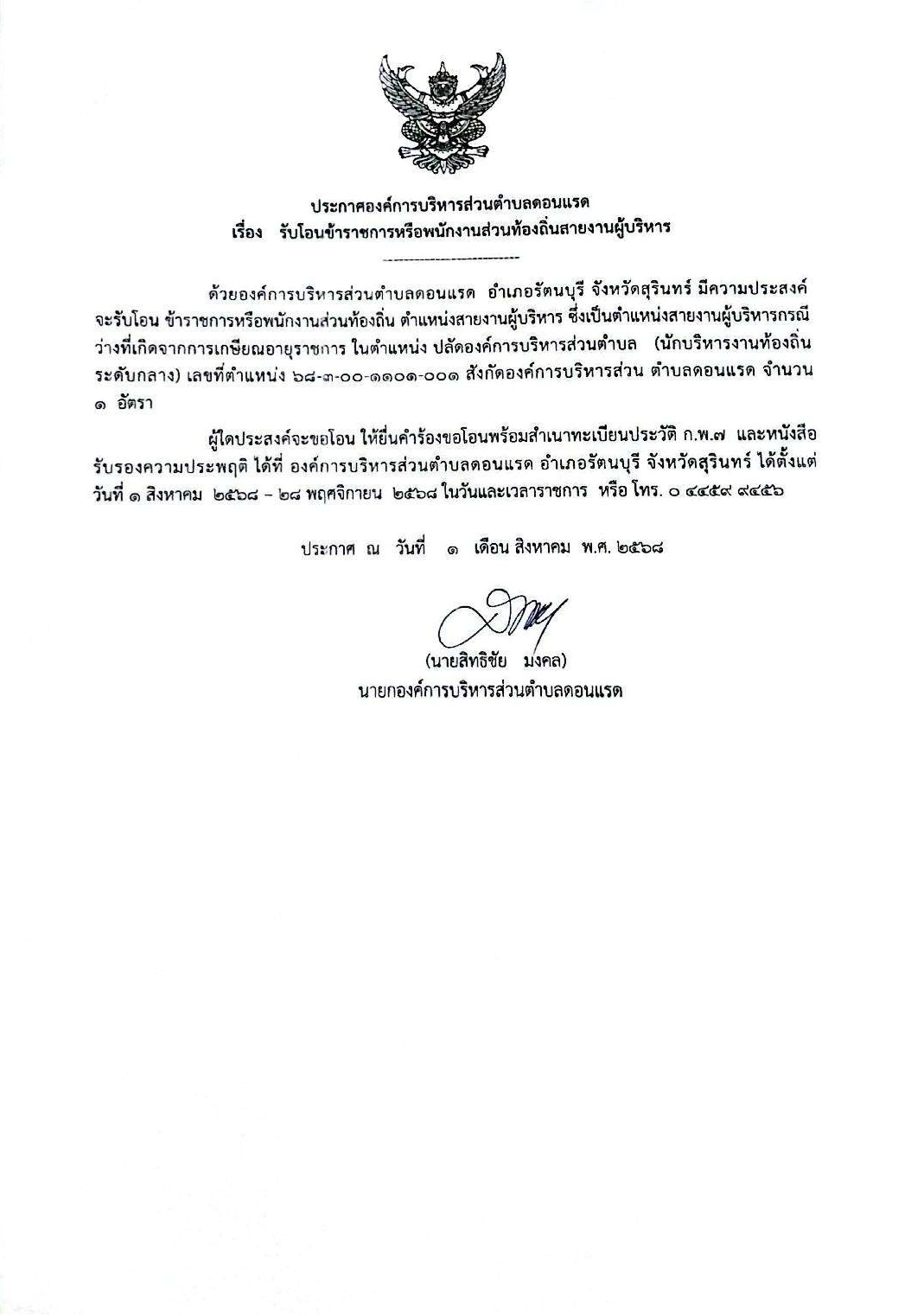 ประกาศองค์การบริหารส่วนตำบลดอนแรด : เรื่อง รับโอนข้าราชการหรือพนักงานส่วนท้องถิ่นสายงานผู้บริหาร